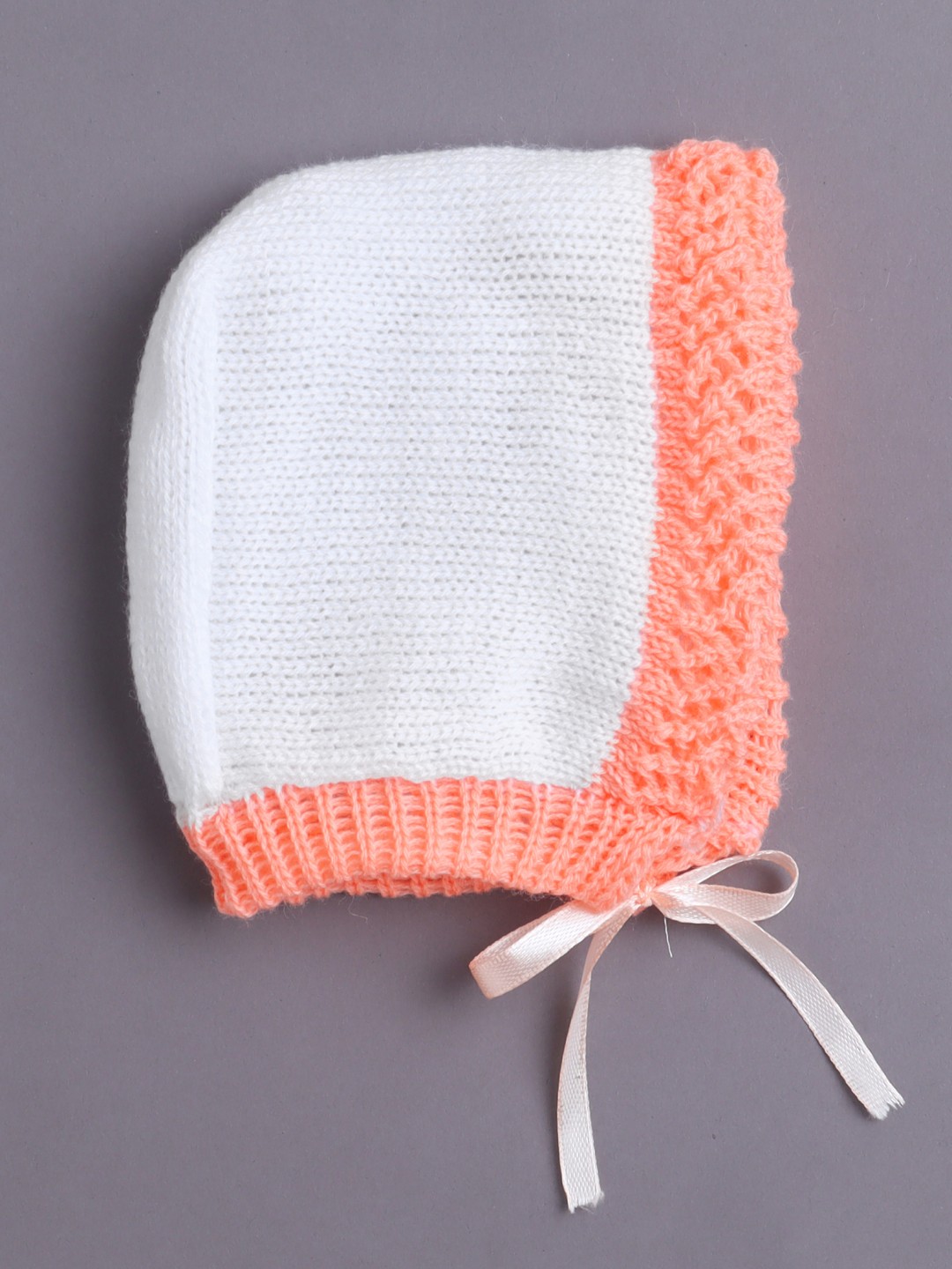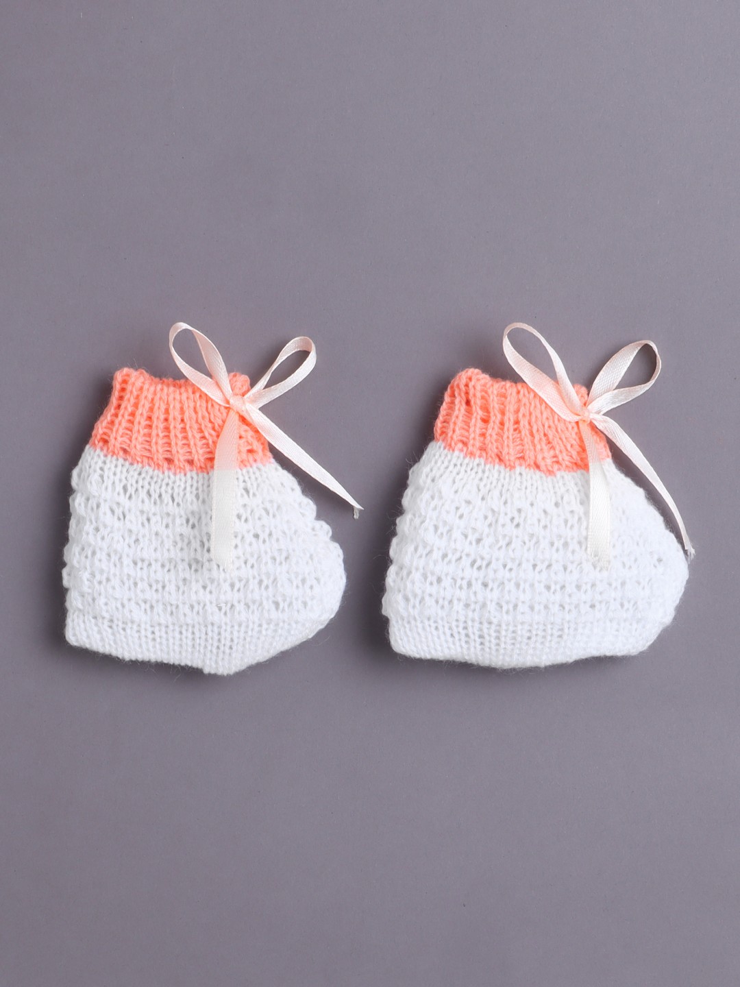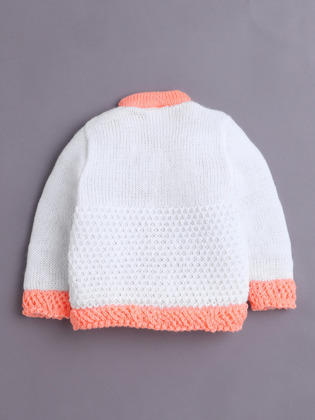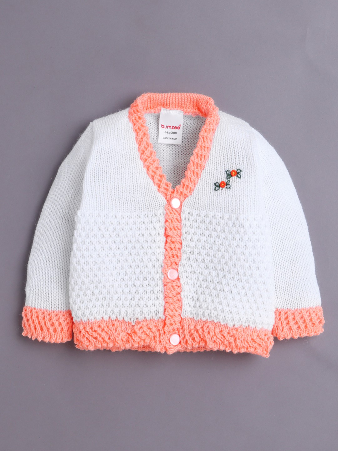 BUMZEE Peach Baby Girls Full Sleeves Acrylic Blend Sweater With Cap & Socks