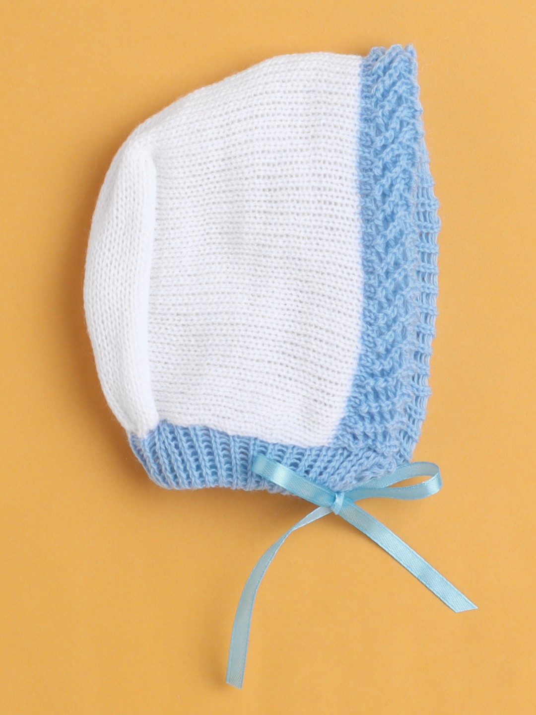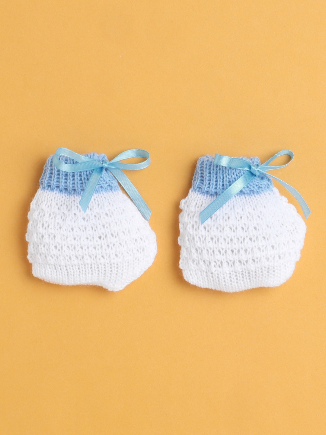 BUMZEE Blue Baby Boys Full Sleeves Acrylic Blend Sweater With Cap & Socks