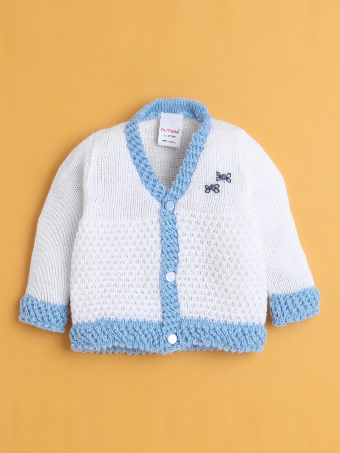 BUMZEE Aqua Baby Boys Full Sleeves Acrylic Blend Sweater With Cap & Socks