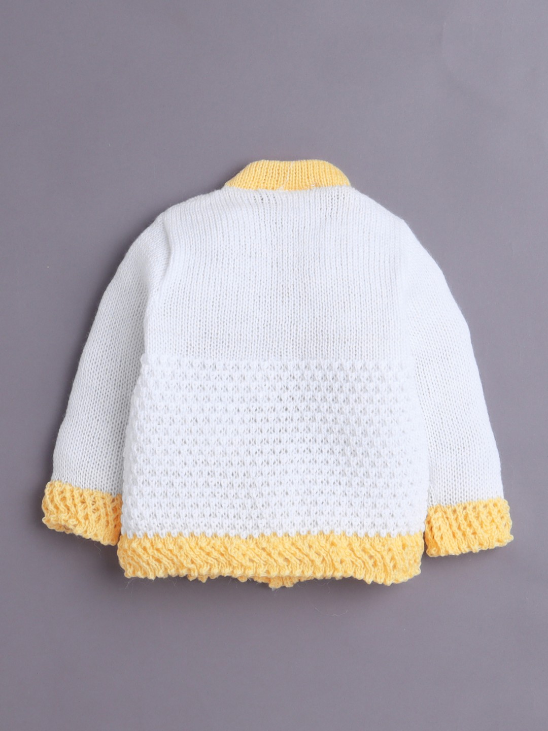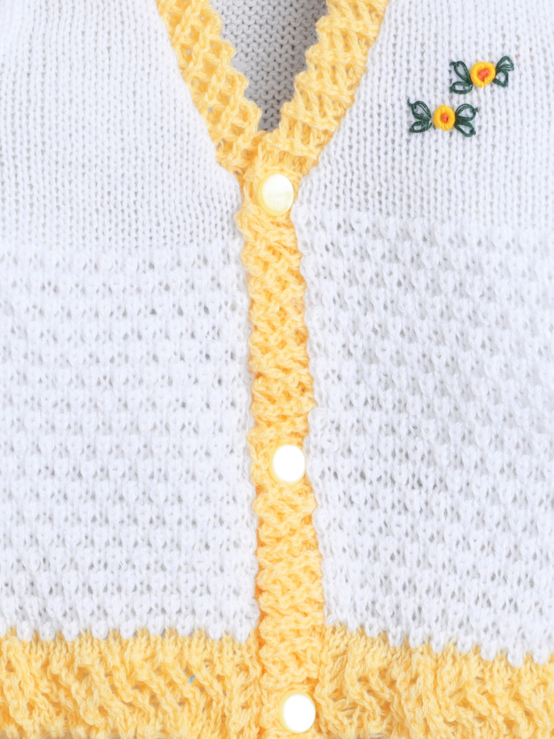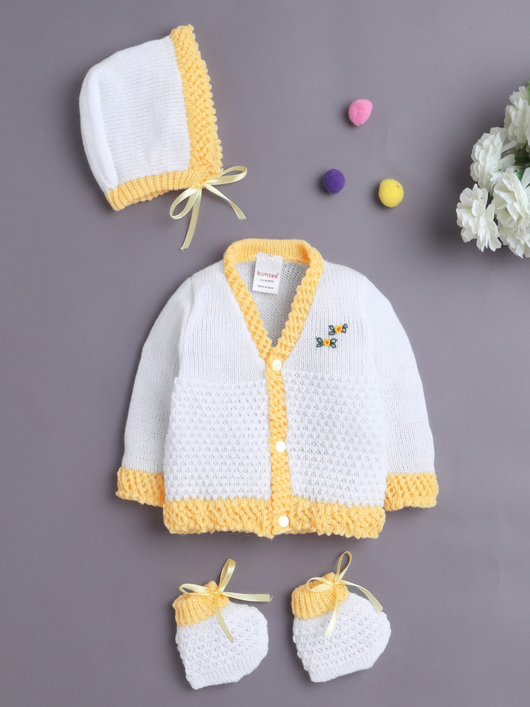 BUMZEE Yellow Baby Girls Full Sleeves Acrylic Blend Sweater With Cap & Socks