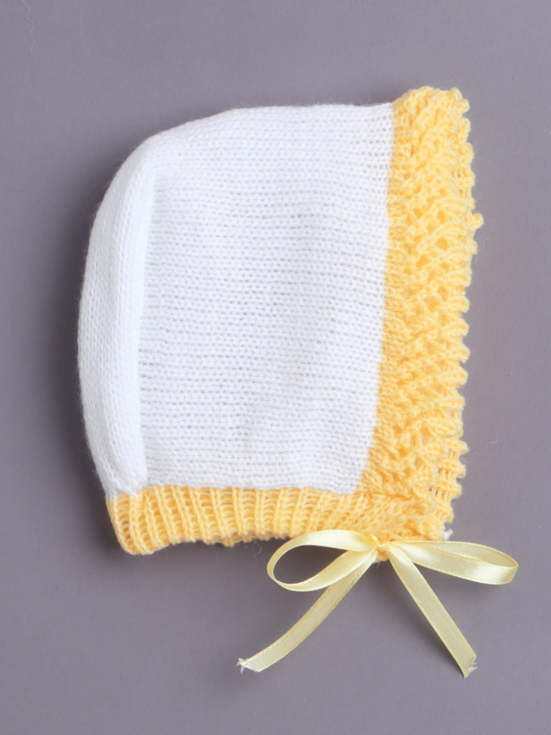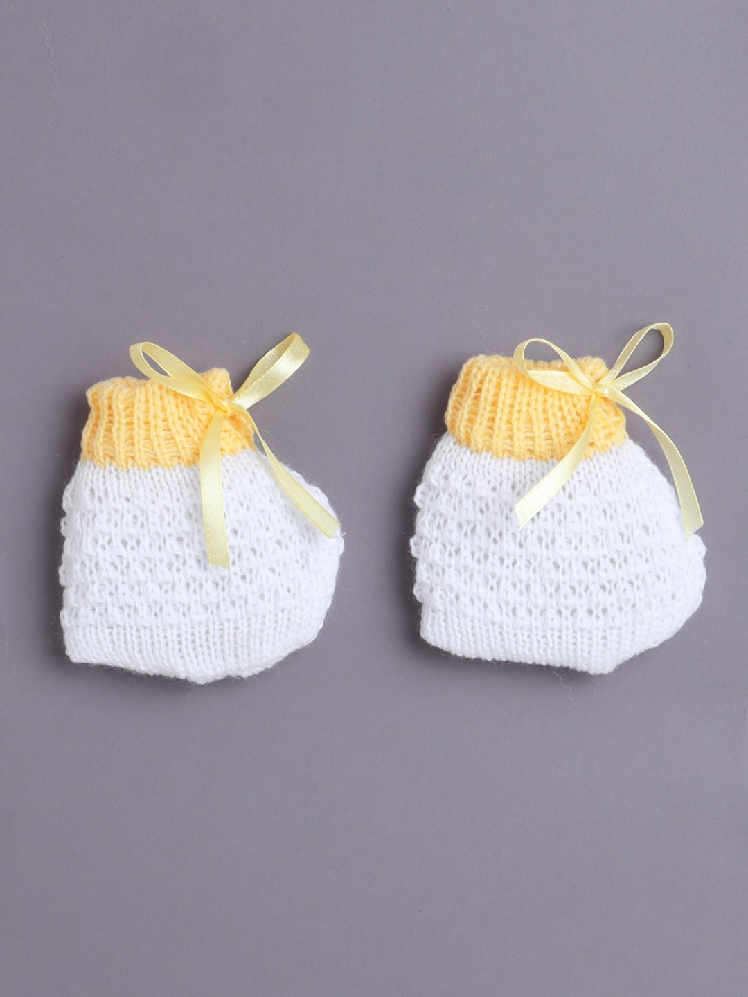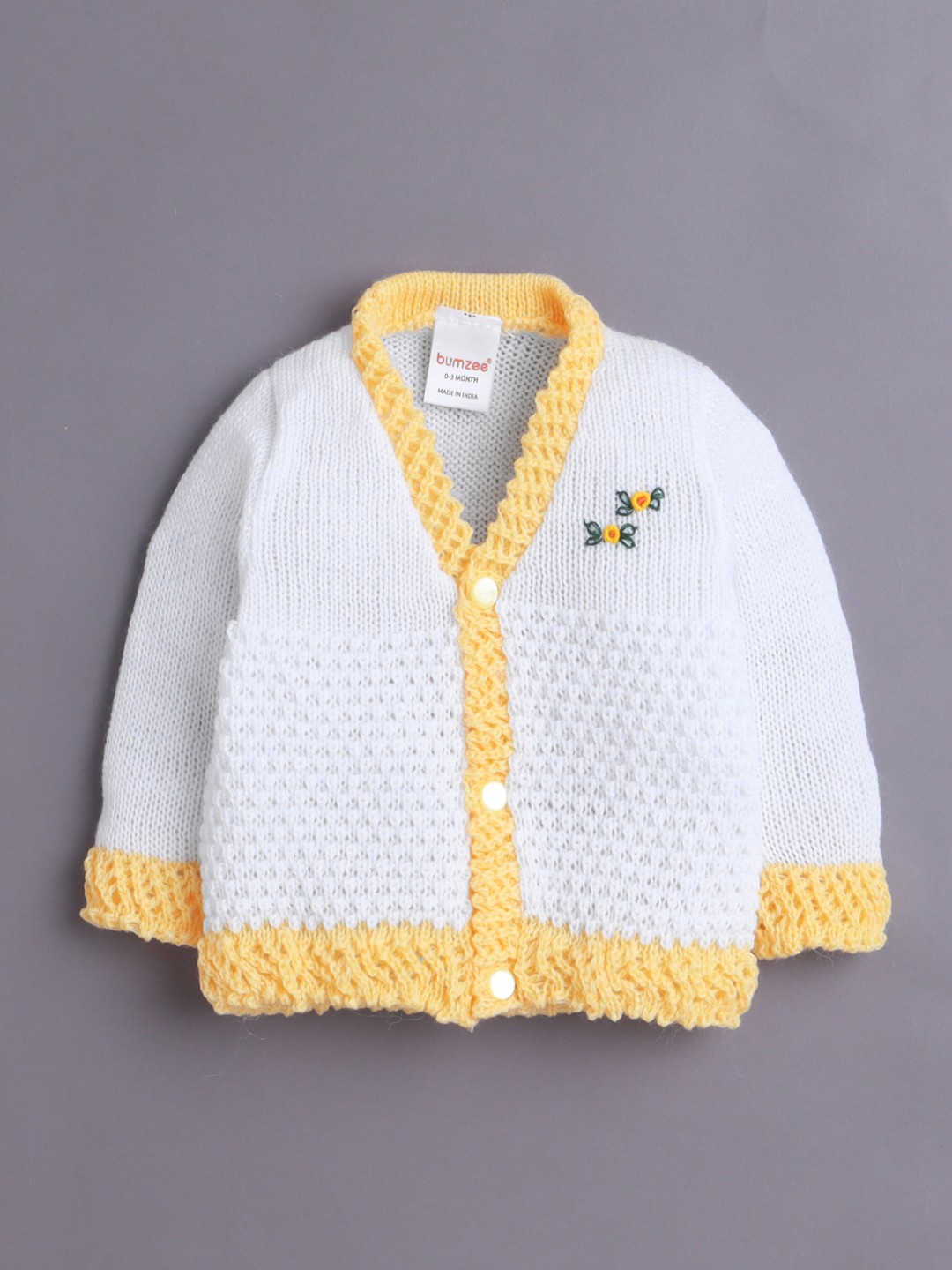 BUMZEE Yellow Baby Girls Full Sleeves Acrylic Blend Sweater With Cap & Socks