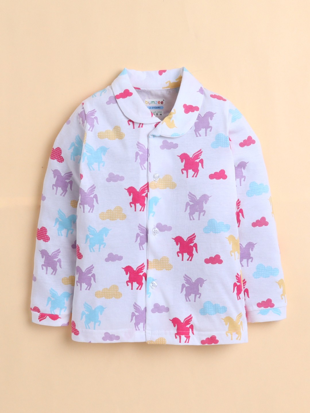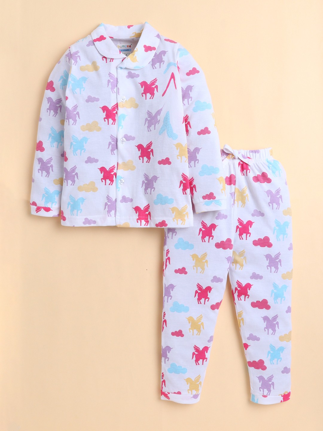 BUMZEE Peach Girls Full Sleeves Cotton Night Suit