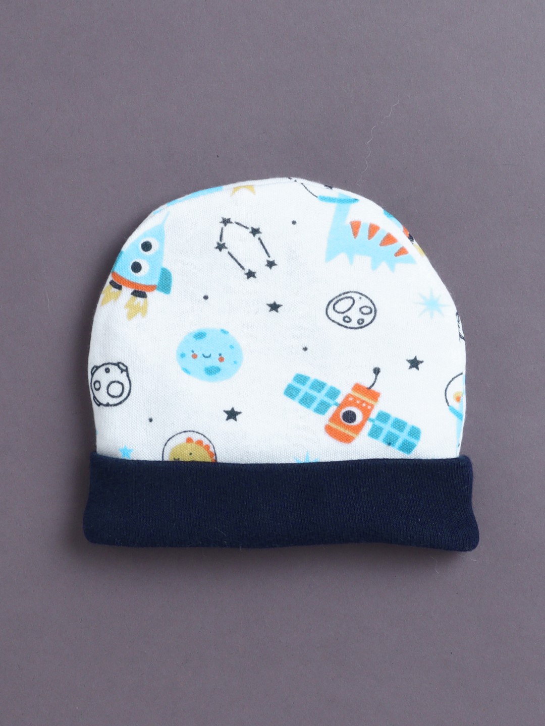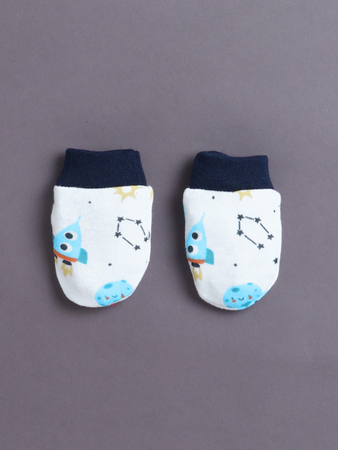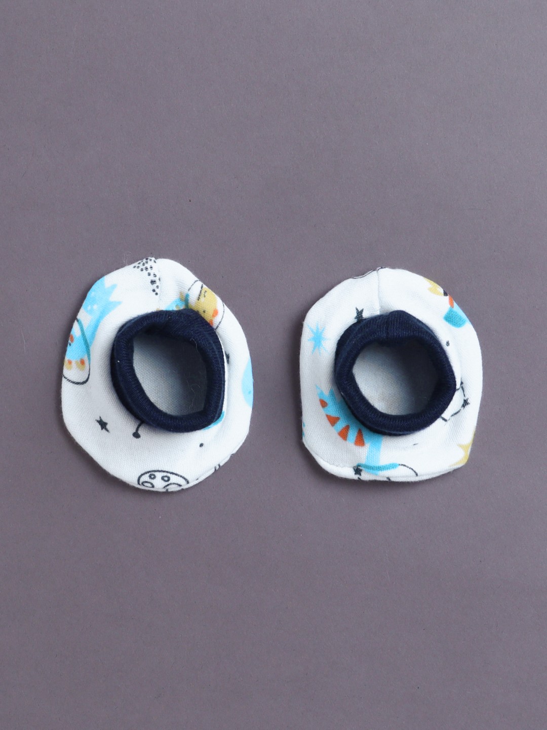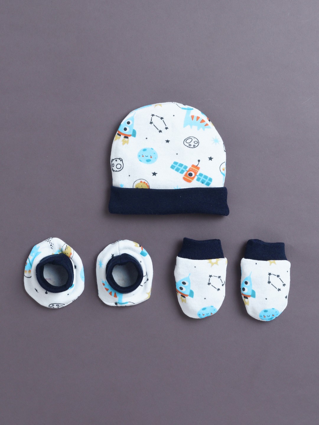 BUMZEE White & Sky Blue Boys Cotton Cap Mitten Bootie Set