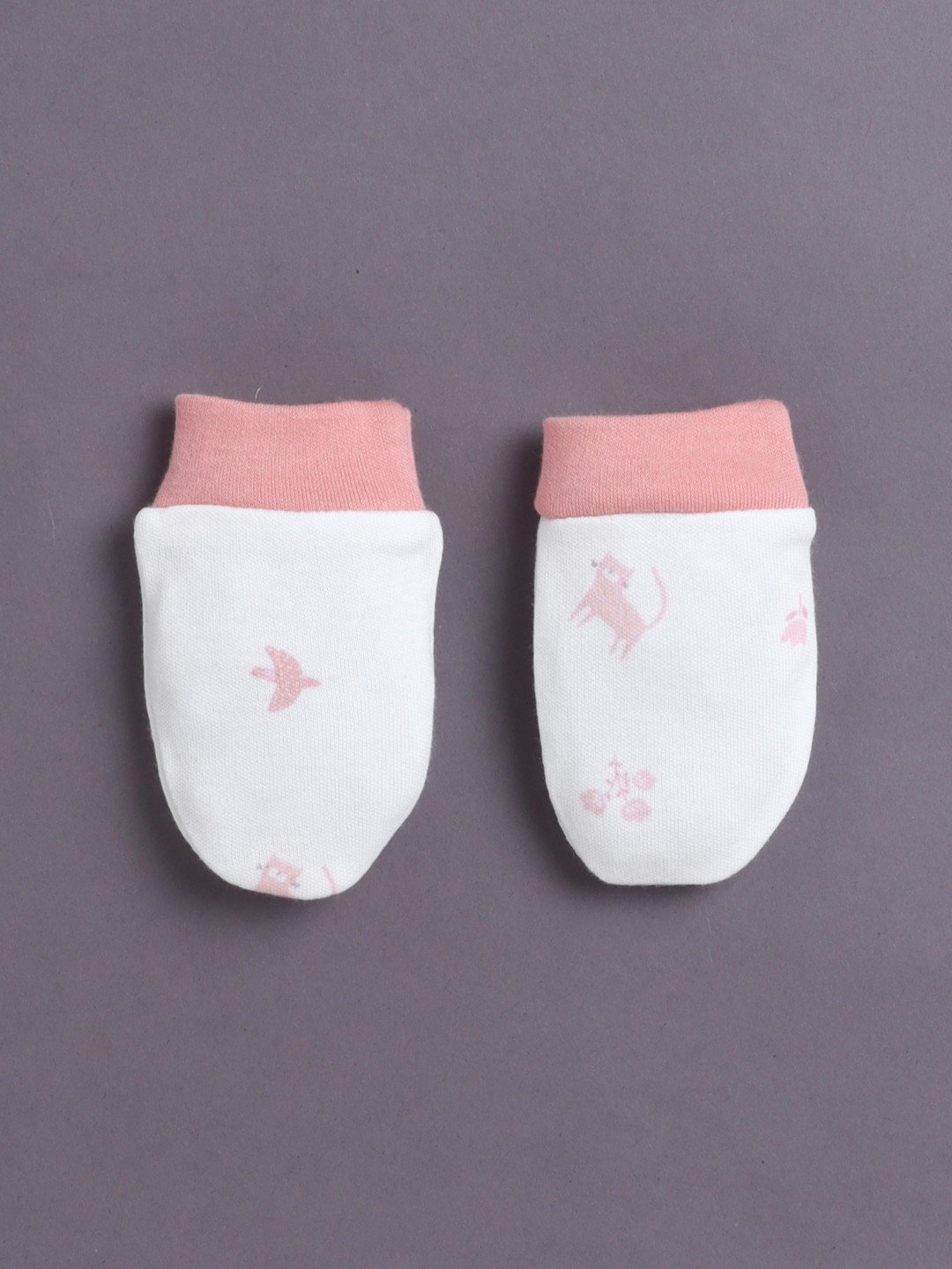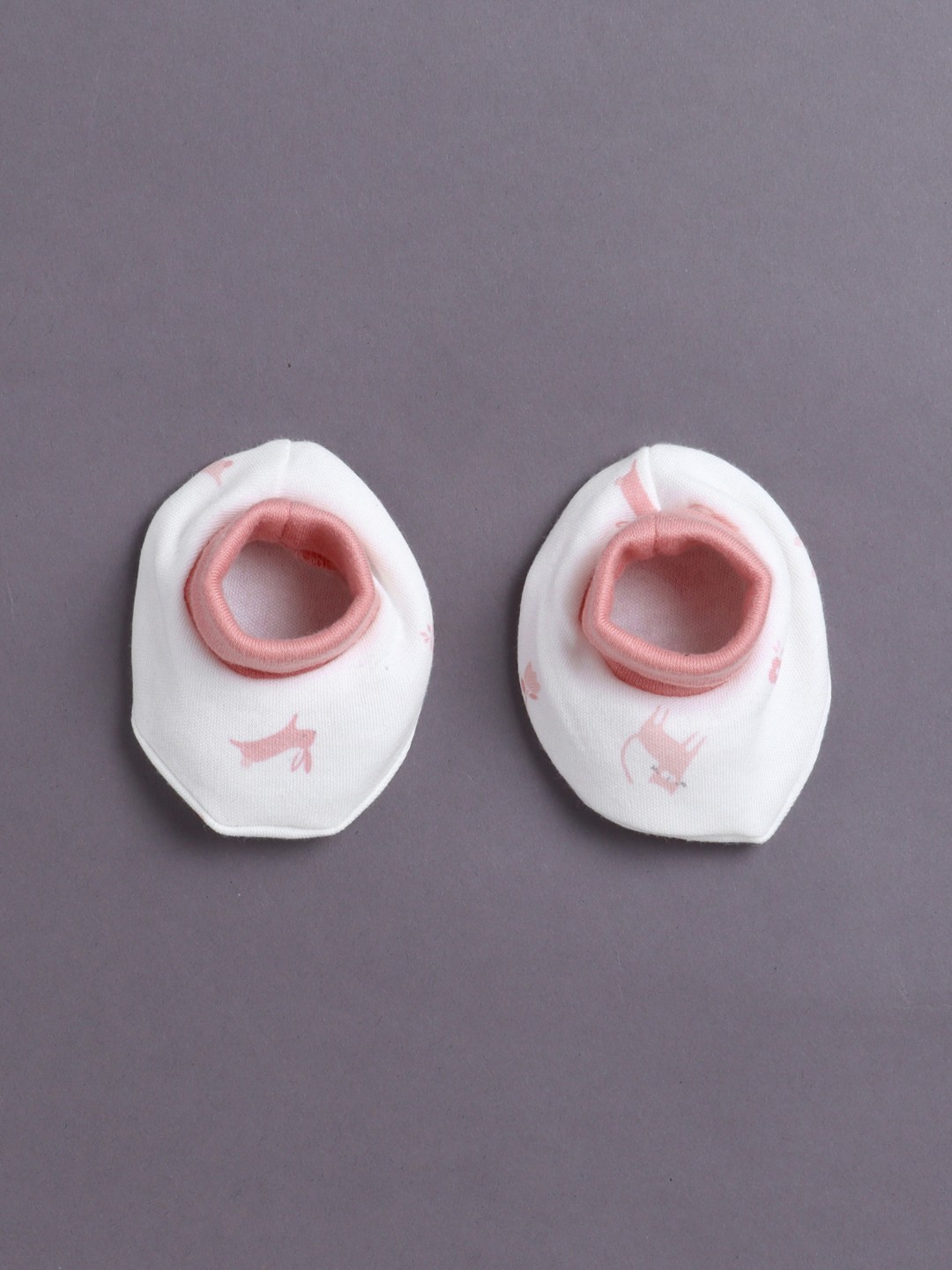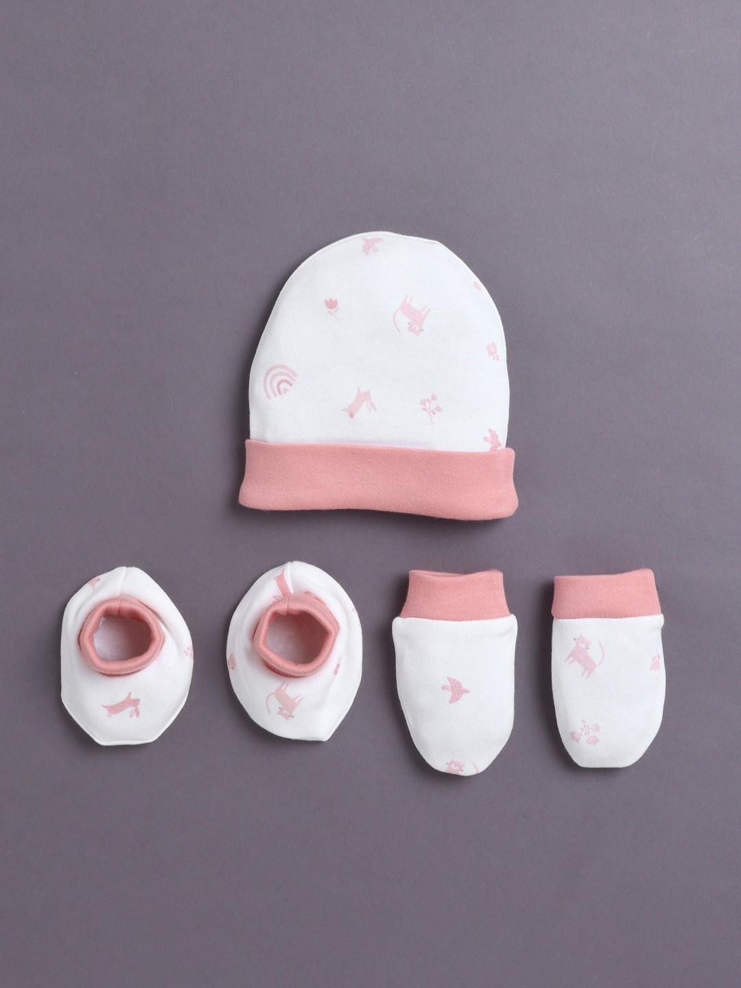 BUMZEE Pink & White Girls Cotton Cap Mitten Bootie Set