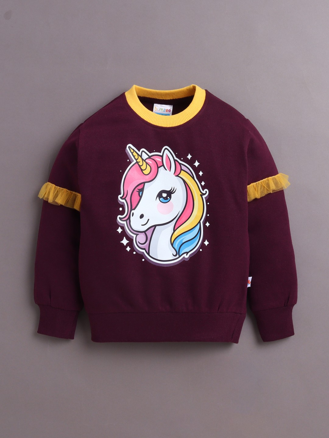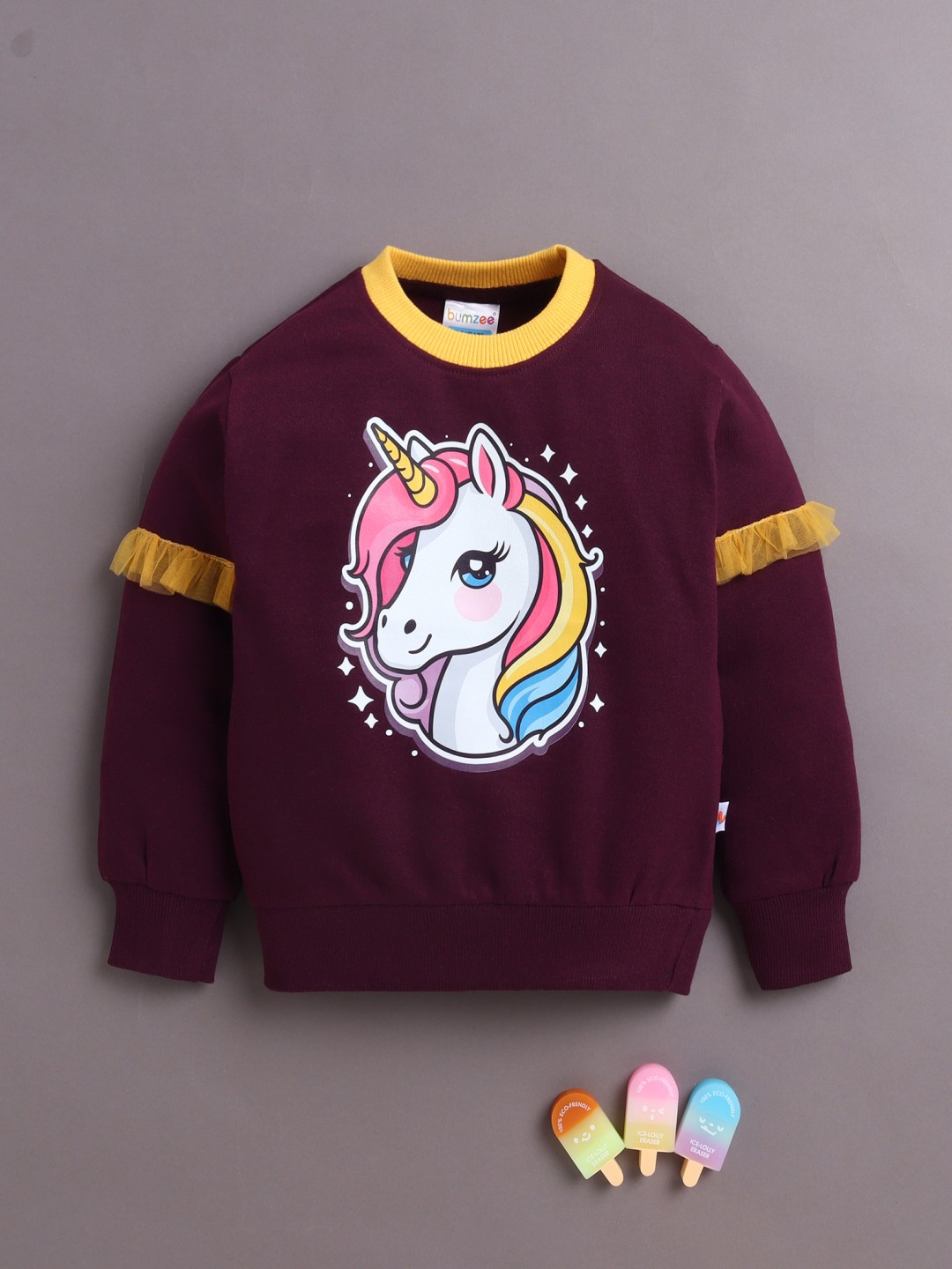 BUMZEE Wine Girls  Full Sleeves Cotton Sweatshirt