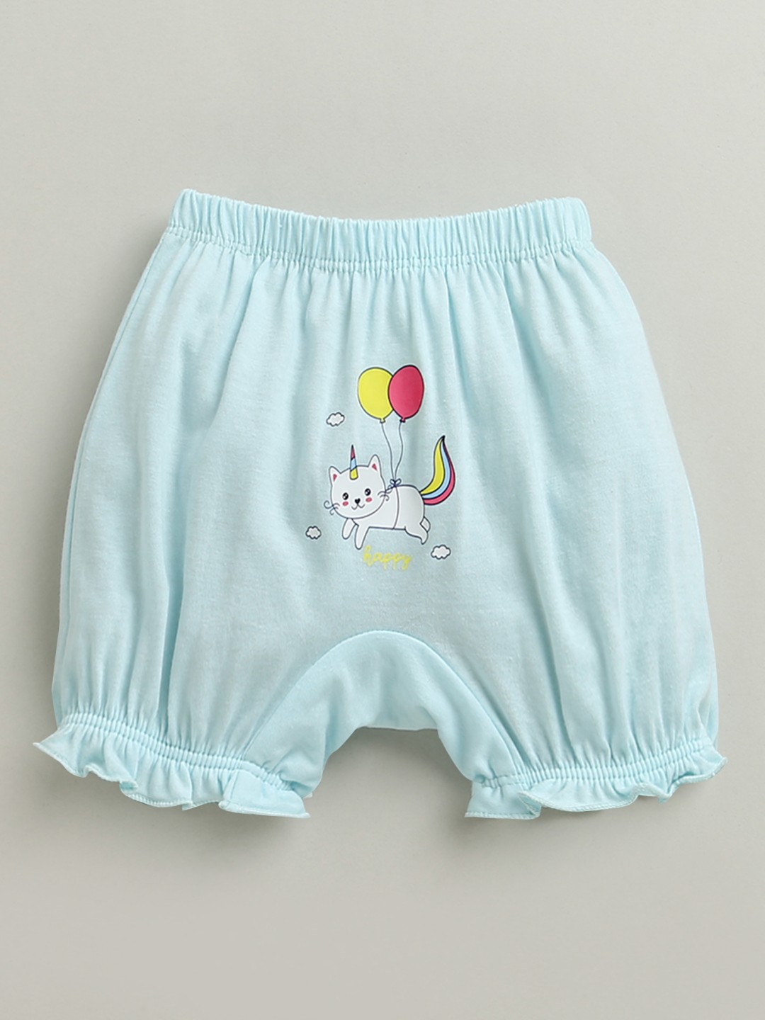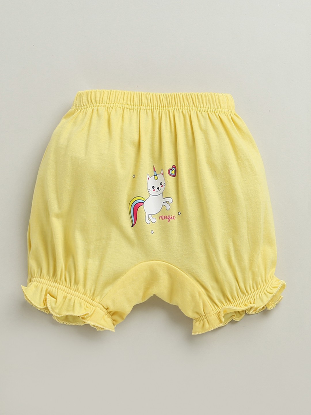 BUMZEE Yellow & Sky Blue Girls Cotton Bloomers Pack of 3