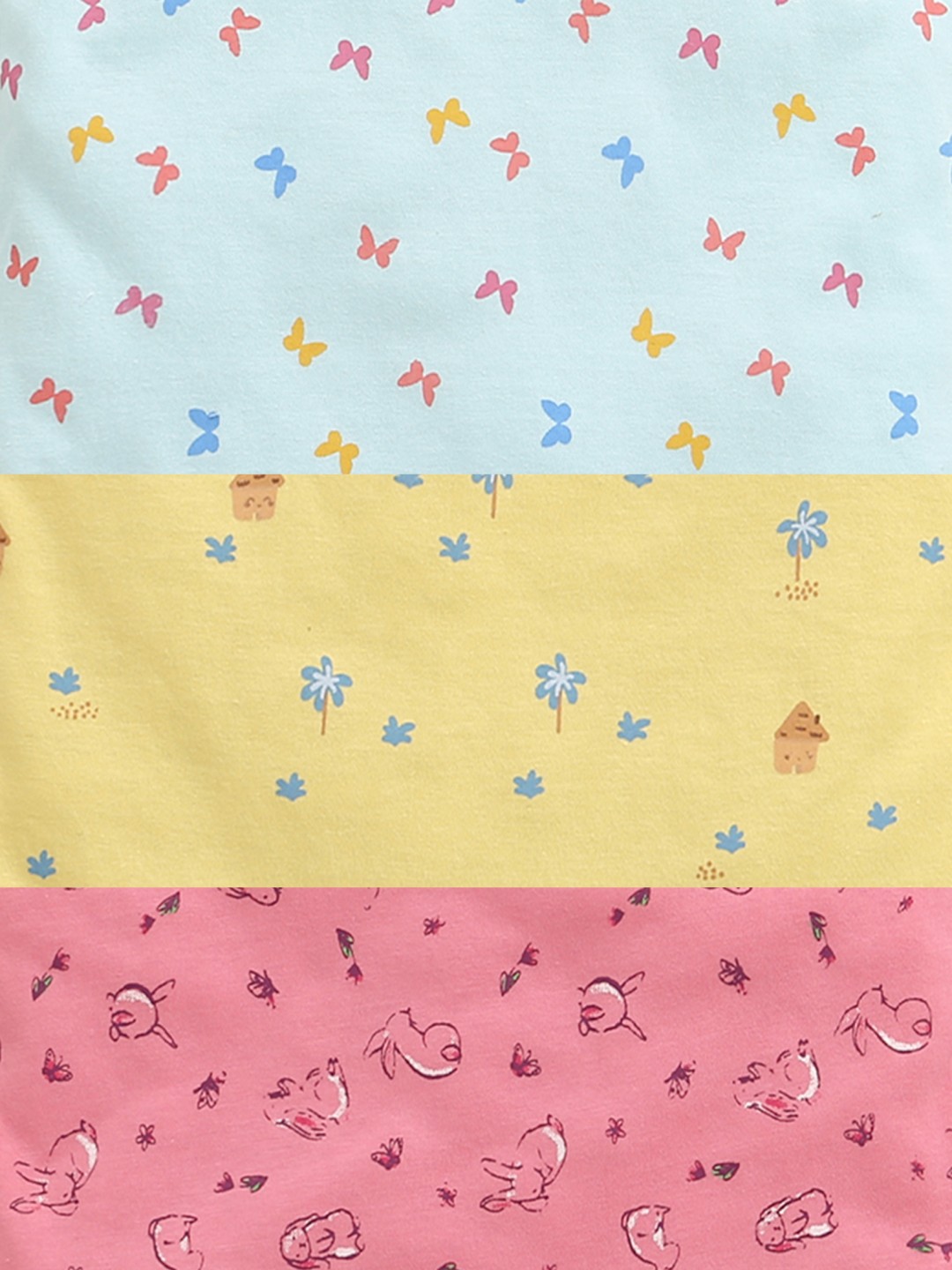 BUMZEE Yellow & Pink Girls Cotton Bloomers Pack of 3