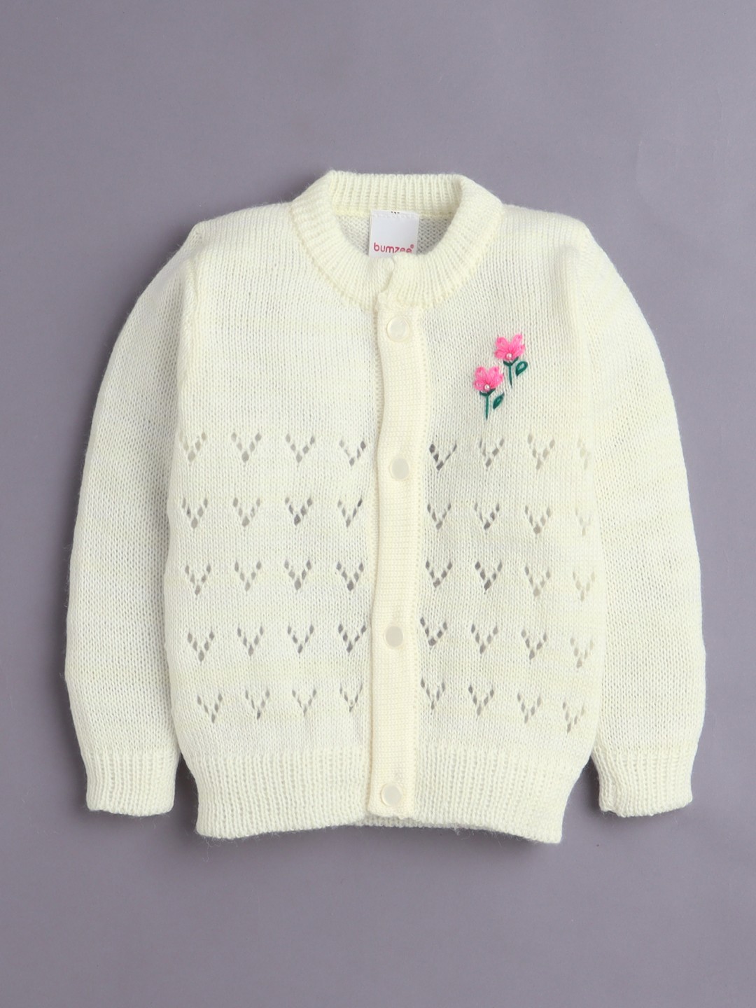 BUMZEE Yellow Baby Girls Full Sleeves Acrylic Blend Sweater With Cap & Socks