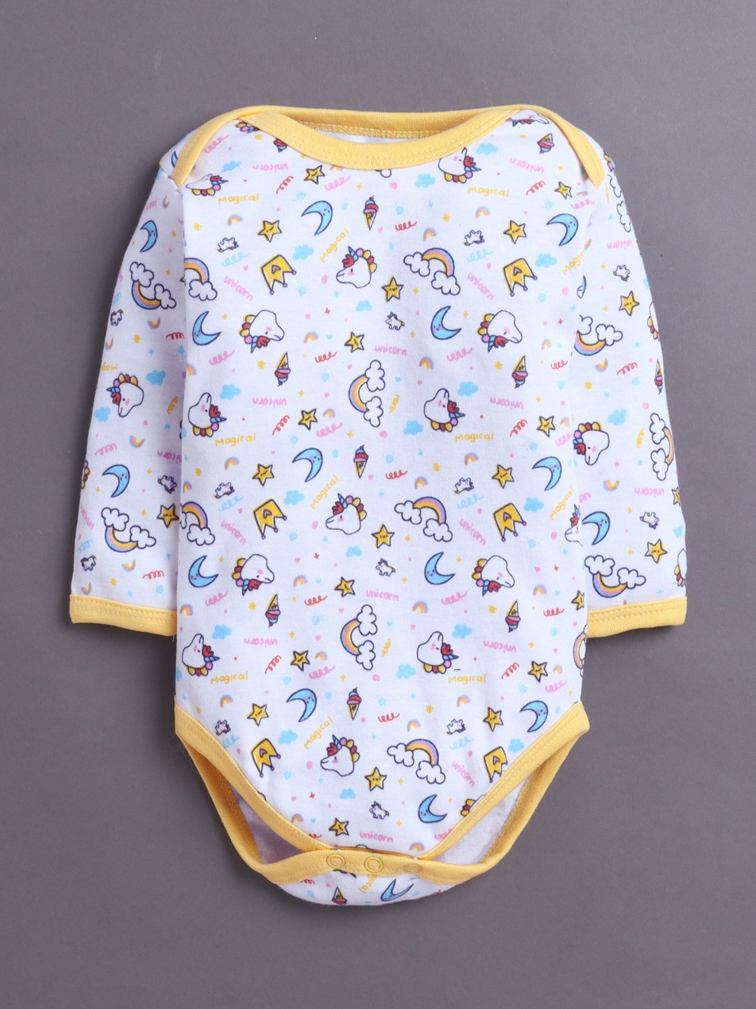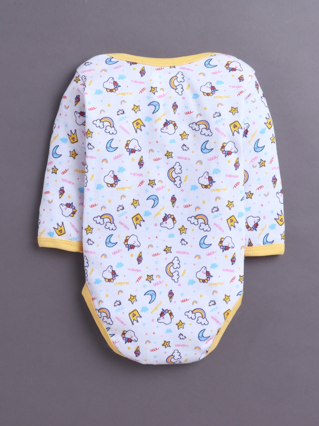 BUMZEE Yellow & White Baby Girls Full Sleeves Cotton Bodysuit Onesies Pack Of 3